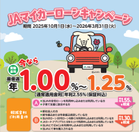 JAマイカーローンキャンペーン 今なら金利 年1.00%!?
