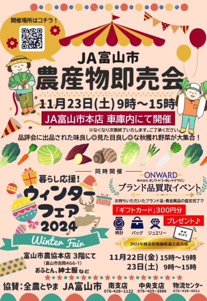 「JA富山市農産物即売会」「暮らし応援!ウィンターフェア2024」の開催について