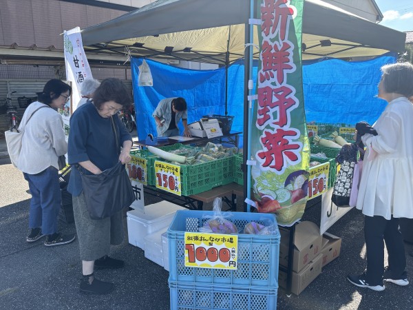 令和6年10月13日(日)連休中日、山室中部地区センターで行われた「文化祭~作品・健康づくり展~」に出張まんなか市場が参加しました。イベントでは地域の方々の絵画や書道といった作品展示の他、やまちゅうカフェの軽食の販売。野菜摂取チェックなど毎日の生活を見直すきっかけになる企画が催されていました。まんなか市場では、新高呉羽梨や大根、白ネギなどの秋冬野菜を販売。今回から富山の銘菓、竹林堂さんの酒まんじゅうの販売もスタート。多くの方々に手に取っていただき早期完売となりました!地域の皆様との交流の場を設けていただき改めて感謝申し上げます。