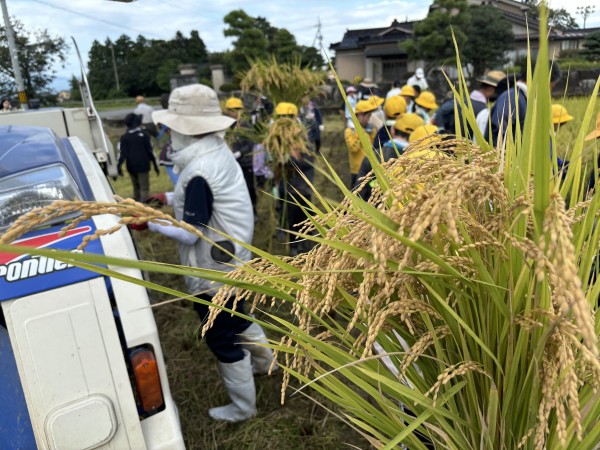 富山市立月岡小学校の5年生(2クラス・44人)は9月17日、「富山米 富富富の稲刈り体験」を行いました。
