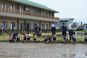 食育教育の一環として、今年もトータルサポート室と営農担当職員が6月8日に熊野校下ふるさとづくり推進協議会と協力して「野菜作り教室(サツマイモ)」を開催しました。