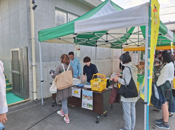 天候はまさに秋晴れ!作品展示、堀川中学校 吹奏楽部の演奏、富山商業高等学校 應援部の演技披露、自衛隊・警察車両・消防車両の展示、消防操法訓練の披露などが行われ大人から子供まで多くの方で賑わいました。当農協もまんなか市場出張マルシェとして、野菜などの販売をさせていただき、大盛況で完売する野菜が続出しました。
