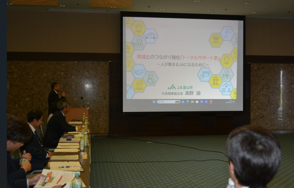令和8年3月26日、滋賀県の甲賀農業協同組合より、池村組合長殿・津田常務殿・田中常務殿・小林課長殿・ 田中課長殿・飯田次長殿・立入課長殿 また、滋賀中央会より山田専務・藤原参事に富山市へご来場頂きました。 ご来場のきっかけは、1月の当JA 高野組合長によるトップフォーラムでの発表を視聴して頂いてのご来場であり、 大変嬉しいご来場でありました。